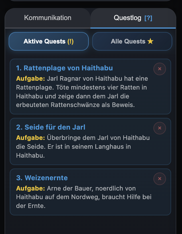 Abenteuer anzeigen lassen — der Weg zum Heiligen Hain des Odin in Haithabu entfällt. Die Liste zeigt auf einen Blick, welche Quests Du bereits bestanden hast, wie viele