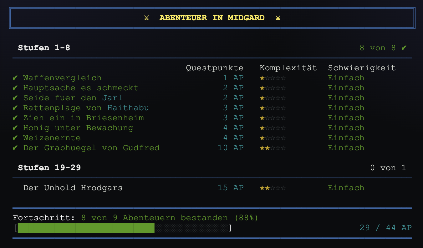 bestimmte Abenteuer einblenden. Ein Fortschrittsbalken am Ende zeigt Dir, wie weit Du auf Deinem Weg durch Midgards Abenteuer bereits gekommen bist.