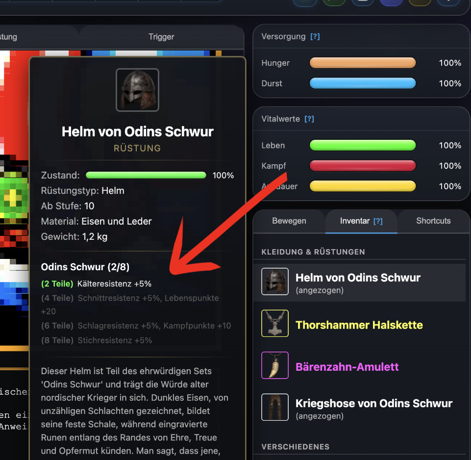 Untersuchen eines Set-Teils werden Dir alle Schwellen und Boni angezeigt. Im Spiel siehe auch: hilfe setbonus